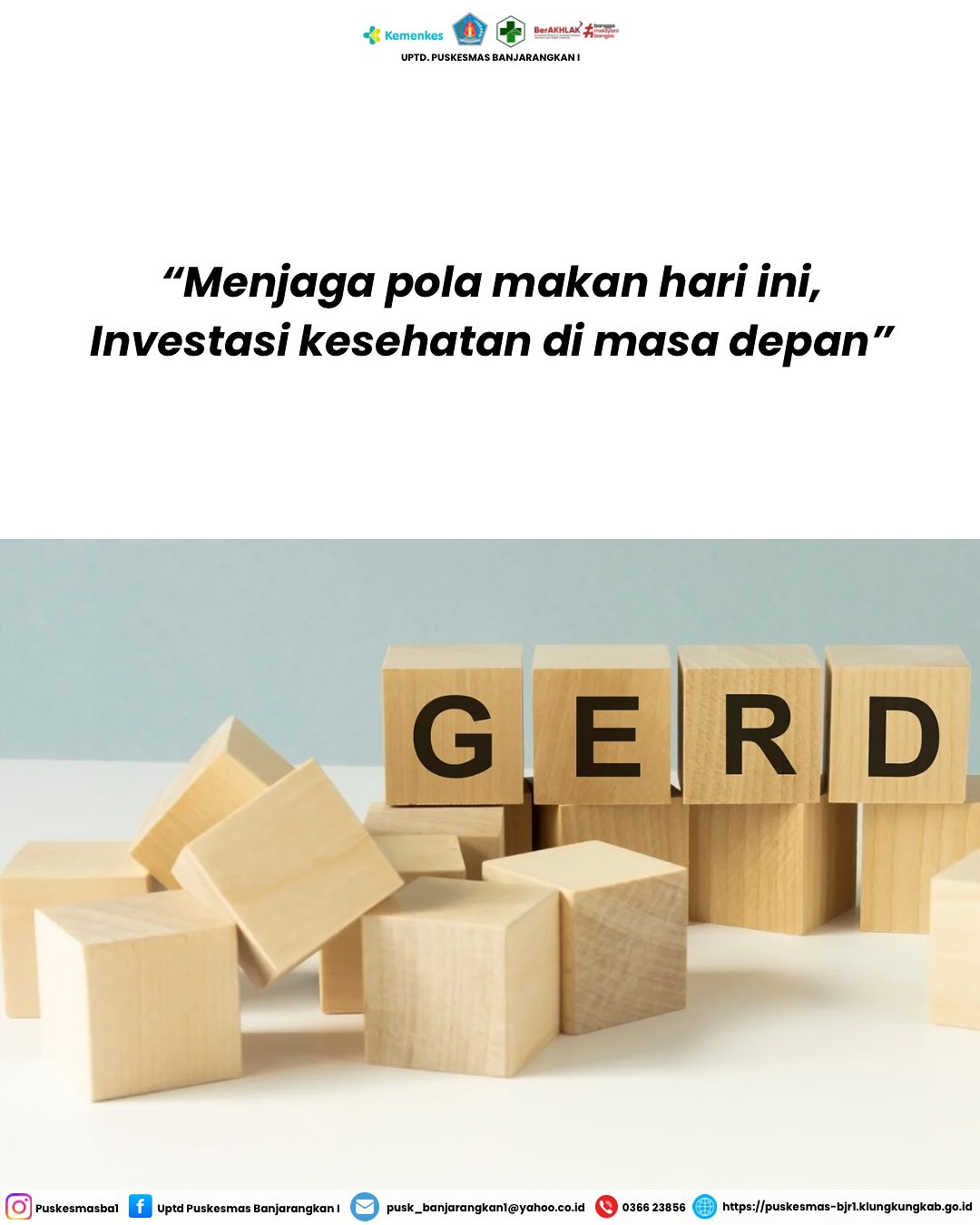 Halo healties sahabat UPTD Puskesmas Banjarangkan I Asam lambung sering naik? Jangan dianggap sepele ya!GERD bisa mengganggu aktivitas dan kualitas hidup kalau dibiarkan 😣 Kenali gejalanya, hindari pemicunya, dan terapkan gaya hidup sehat ✨Kalau sering kambuh, jangan ragu untuk datang ke fasilitas terdekat 👩‍⚕️👨‍⚕️ Selalu terapkan #berakhlak dalam setiap kegiatan demi terwujudnya pelayanan kesehatan yang bermutu menuju … Baca Selengkapnya