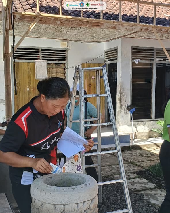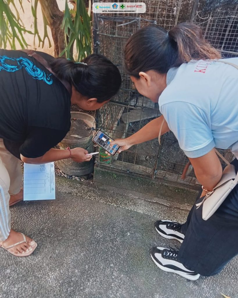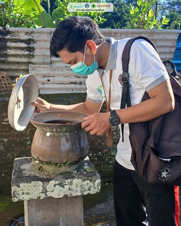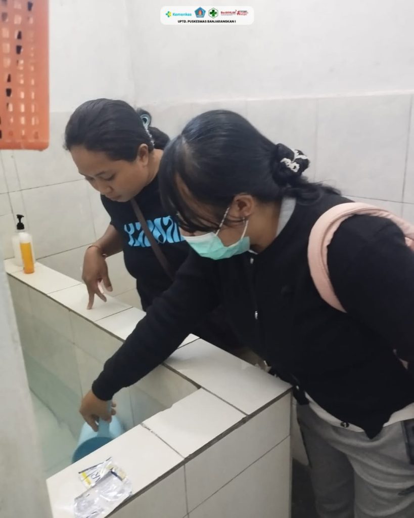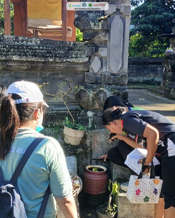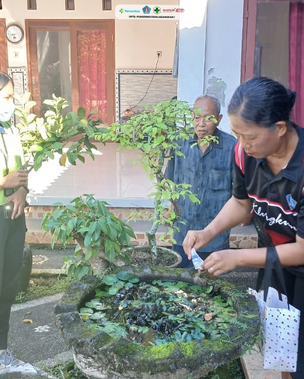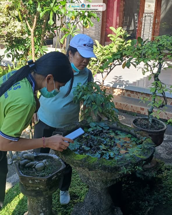 Pelaksanaan Kegiatan Pemberantasan Sarang Nyamuk (PSN) dalam rangka pengendalian dan pencegahan DBD di Dusun Kawan, Desa Bakas bersama perangkan desa dan petugas dari UPTD. Puskesmas Banjarangkan I.