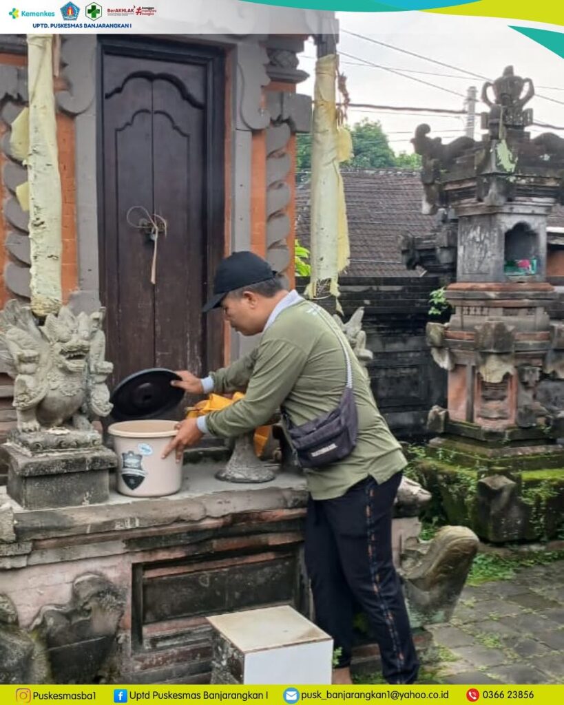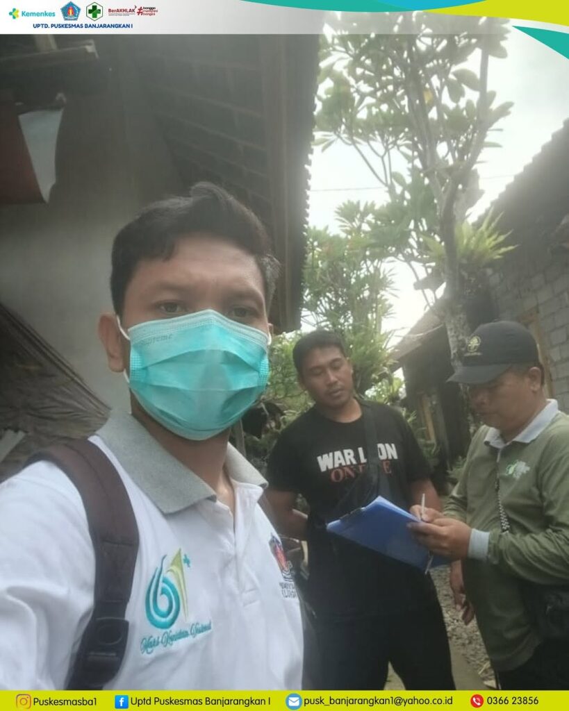 Pelaksanaan Penyelidikan Epidemiologi (PE) dalam rangka pengendalian dan pencegahan DBD di Dusun Kawan dan Dusun Kangin, Desa Tusan bersama perangkat desa dan petugas dari Uptd Puskesmas Banjarangkan I.